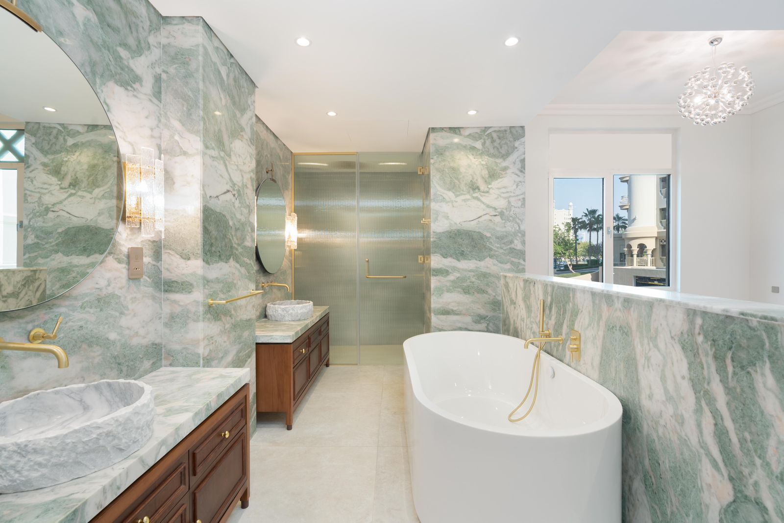 Premium bathroom execution featuring custom marble cladding, freestanding bathtub installation, bespoke vanities, and elegant brass fixtures. Our team ensures precision in every detail, from plumbing integration to finishing touches, delivering a seamless blend of style and functionality.